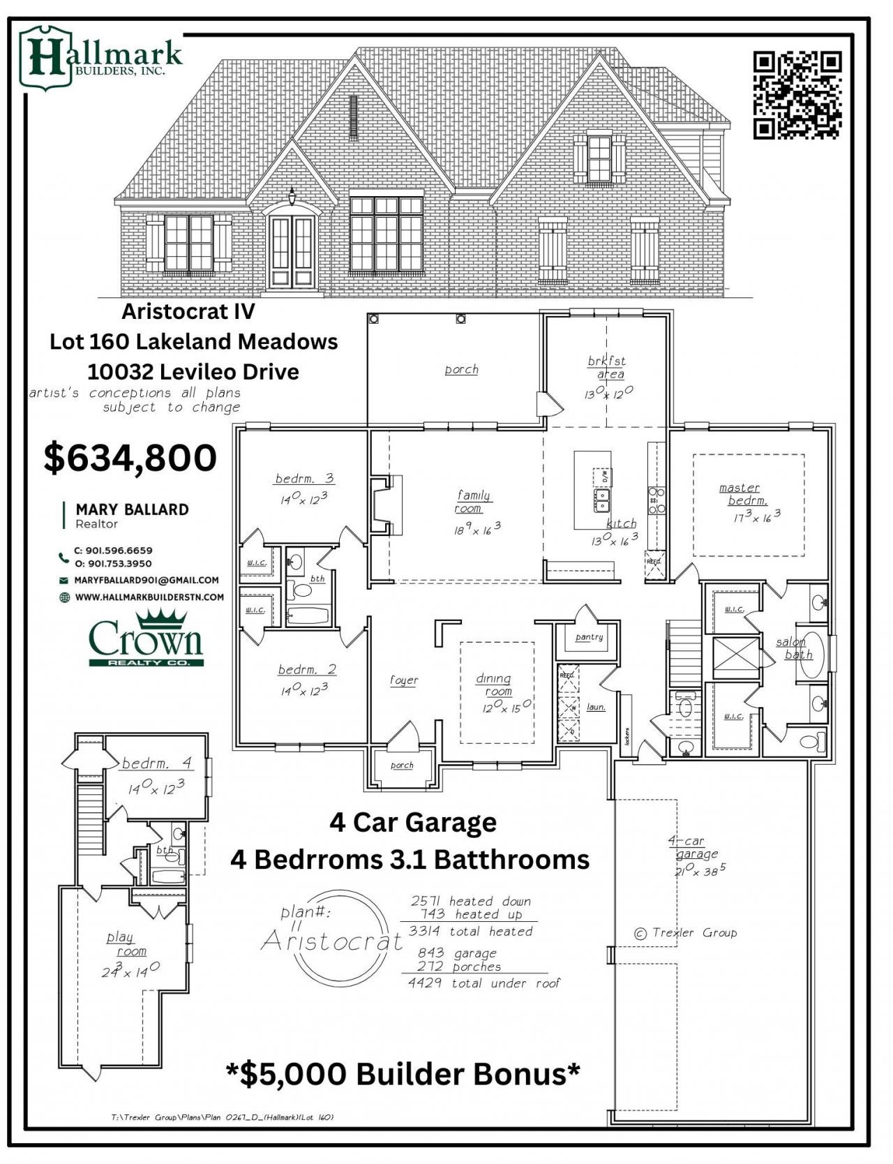 $5K BUILDER BONUS! Beautiful new community in Lakeland just minutes from sought after Lakeland schools. This home has a 4 car garage, 3 bedrooms down 2.1 baths down, 1 bedroom 1 bath up with playroom or 5th bedroom. Elegant finishes throughout, double ovens, gas cooktop, and a vented hood. Ready August 2026. Neighborhood pool and pickleball courts ready Summer 2026! Contact listing agent for more information.